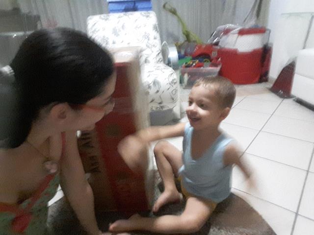 Nós brincamos muito. Davi Antonios riu tanto, mais tanto e achou uma graça a mamãe colocando o lego no buraco. Exercitando importante habilidade motora.