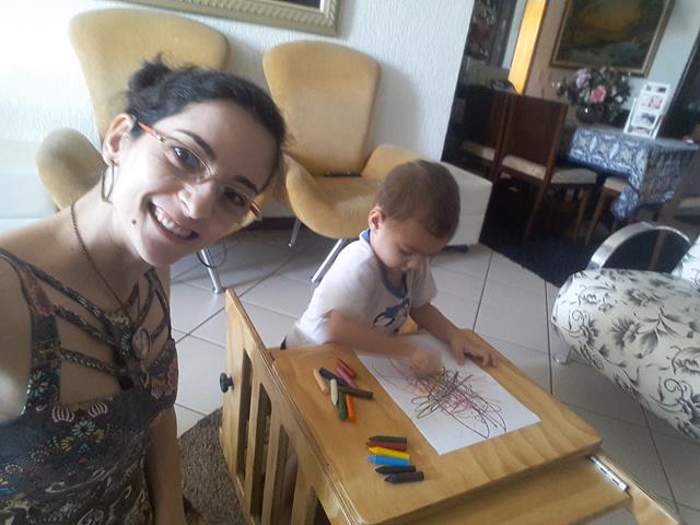Faço atividades com o Davi Antonios desde sempre, eu adoro e ele adora esses momentos. Quando ele era bem bebê eu criava brinquedos, coisas simples, sempre pensando em coisas para ele se divertir e ao mesmo tempo ajudando no seu desenvolvimento. Quando eu digo “atividades” às vezes parece algo chato, mas não, ele adora, fica feliz e pede para fazer.