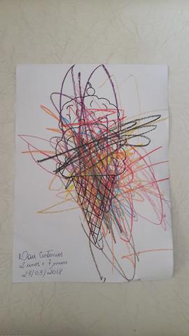 O Davi Antonios me chama: “Mamã, quelo tar orvete” (“Mamãe, quero pintar sorvete”). A mamãe pesquisou e imprimiu o desenho “Sorvete”. Brincar com giz de cera estimula a concentração, coordenação motora, criatividade, imaginação e reconhecimento das cores.