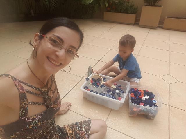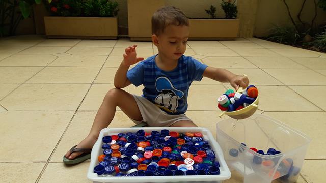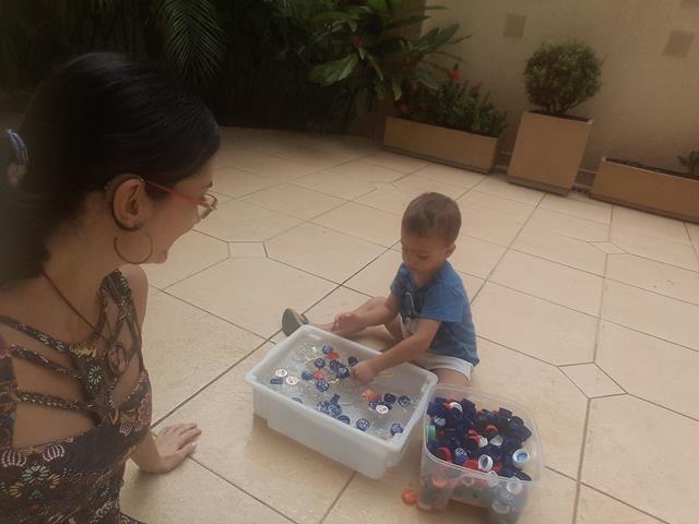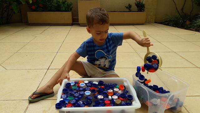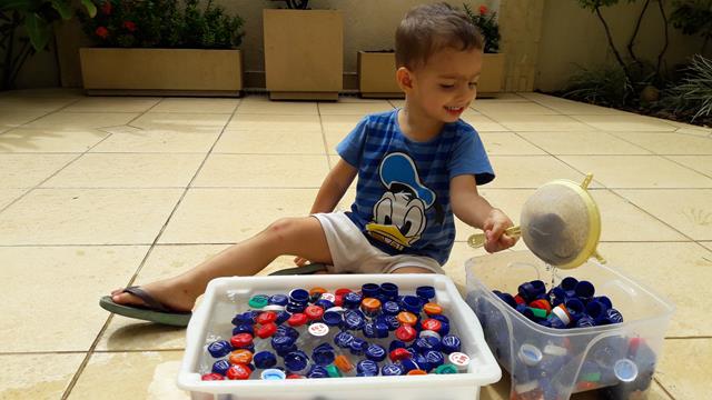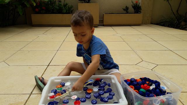 Uma brincadeira antiga! É muito bacana relembrar e reviver a brincadeira quando o Davi Antonios tinha apenas 1 ano e 8 meses. Ah..... muuuuuuitas emoções ao relembrar. Muito amor!! Que saudade no coração. Essa foi a atividade que mais fez sucesso aqui em casa. O meu menino, que gosta de brincar com água, pegando as tampas com peneira e colocando dentro do pote. Ele brincou por horas. Isso mesmo HORAS! A alegria de uma criança está no simples: AMOR e ATENÇÃO. E assim, tudo o que oferece se torna muito divertido e inesquecível. Viva a doce alegria da infância! #maeemdia #brincarjunto #tempojunto #maternidadereal #maternidadeativaeconsciente #educandocomamor #DaviAntonioscom2anose8meses