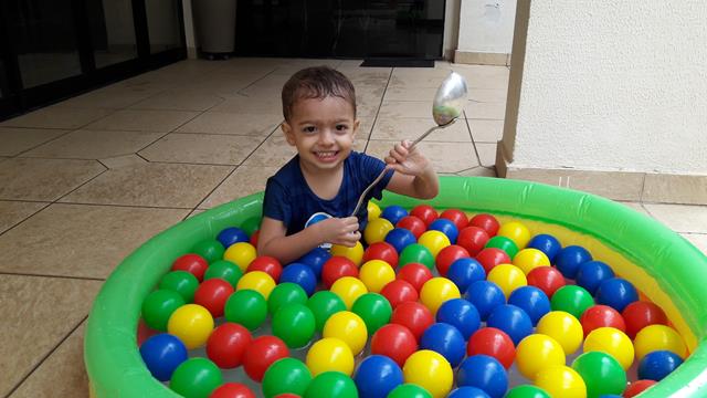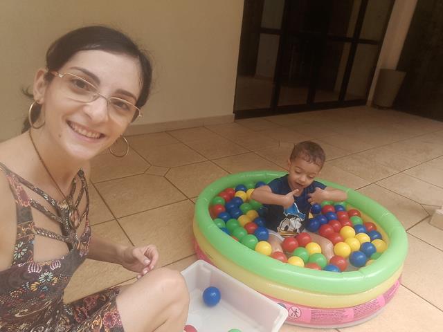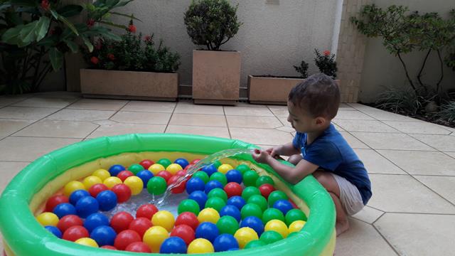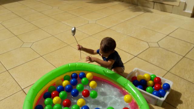 Bom dia, gente brincante! Hoje a atividade envolve transferência com bolinhas de água. Coloquei numa piscina cheia de bolas de plástico, uma colher de feijão e uma bandeja vazia. O objetivo da brincadeira é usar a colher para transferir as bolinhas de uma piscina para a bandeja. Fiquei encantada como uma brincadeira tão simples rendeu tanta diversão! Foi delicioso e refrescante! Mas particularmente, acho a sensação de tocar nessas bolinhas a melhor parte da brincadeira! Davi amou. #maeemdia #brincarjunto #tempojunto #maternidadereal #maternidadeativaeconsciente #educandocomamor #DaviAntonioscom2anose8meses
