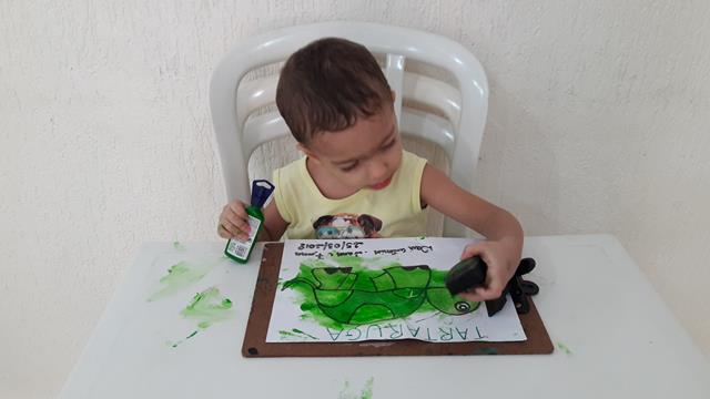 Tenho o casco bem duro. Ando devagar tanto na terra como no mar. Você sabe quem sou? Não sou peluda. Meu nome é... TARTARUGA. Uma atividade simples e divertida. A mamãe desenhou e pintou a tartaruga numa folha e ofereceu para o Davi Antonios a tinta e a esponjinha. O objetivo da atividade é usar a tinta com esponjinha para colorir o casco da tartaruga. Olha que fofura a tartaruga. O que não pode é deixar de brincar e aprender brincando! Uma ótima atividade para trabalhar a coordenação motora fina e noção espacial. #maeemdia #brincarjunto #tempojunto #maternidadereal #maternidadeativaeconsciente #educandocomamor #DaviAntonioscom2anose9meses