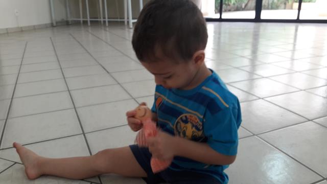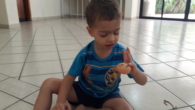 Filho, que sorrisão, você está feliz! Está feliz porque está fazendo uma coisa (atividade) que gosta!
