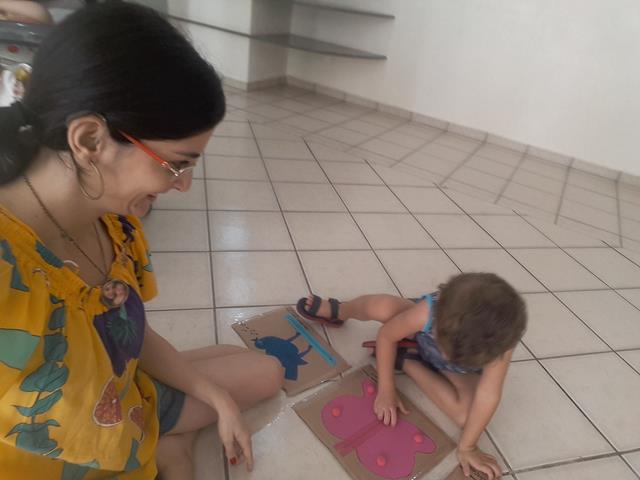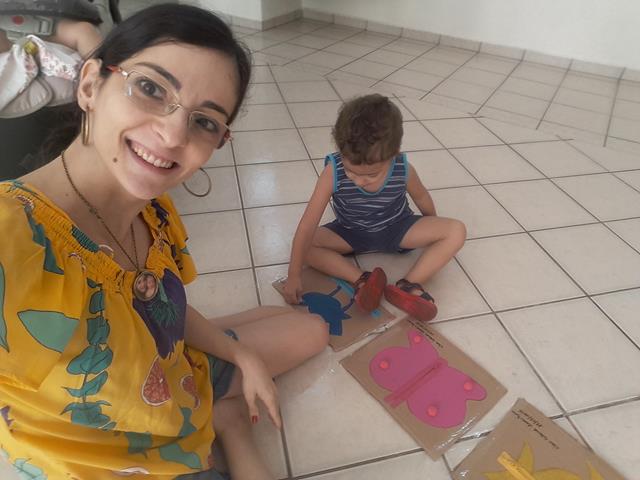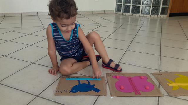 Atividade de hoje: MANIPULAR ZÍPER. Material utilizado: Papelão, zíper, tinta guache, pompom e canetinha. A mamãe desenhou os animais como pássaro, peixe e borboleta e colou com cola quente os pompons e zíperes com cores diferentes. Como o Davi Antonios gosta bastante de zíperes desde pequeno. Ele surpreendeu e participou ao “abrir/fechar” dos zíperes.