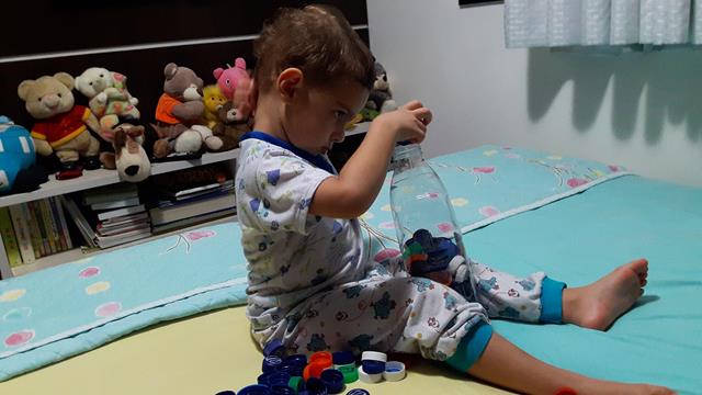 Davi Antonios disse para a mamãe: “Mamã, não quero dormir, quero brincar com tampinhas”. Ele foi a dispensa para pegar as tampinhas e a garrafa plástico que a mamãe tinha guardado. Brincadeira simples e que ele adora fazer encher a garrafa de plástico com tampinhas. Ótima para passar o restinho da noite e para treinar um pouco de coordenação motora fina. A brincadeira deu uma acalmada boa, trabalha com a paciência e persistência! #maeemdia #brincarjunto #tempojunto #maternidadereal #maternidadeativaeconsciente #educandocomamor #DaviAntonioscom2anose10meses