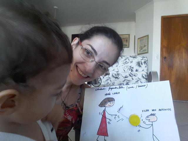 FUTEBOL DE TAMPINHA: vamos aprender como fazer um lindo futebol usando apenas uma tampinha pet? A mamãe recortou o papelão, pegou o papel branco, fez o desenho entre “MÃE & FILHO”, fez o furo no meio e colou o papel branco em cima do papelão. Pegou o papel branco para dobrar três vezes sem rasgar, colocou no meio o furo e depois colou com cola quente a tampinha. Depois de pronto, é só diversão.