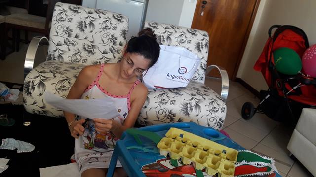 Mamãe cantando uma música para o Davi Antonios: ♫ Eu conheço um jacaré, que gosta de comer... Esconde o pezinho, se não o jacaré, come seu pezinho e o dedão do pé! ♪