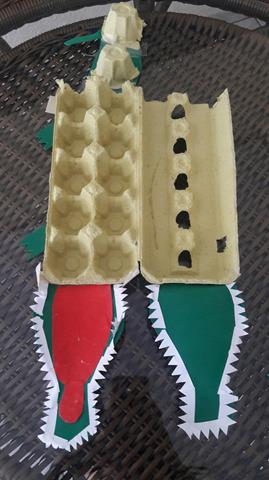 Filho, vamos produzir também um divertido jacaré feito com caixas de ovo?!