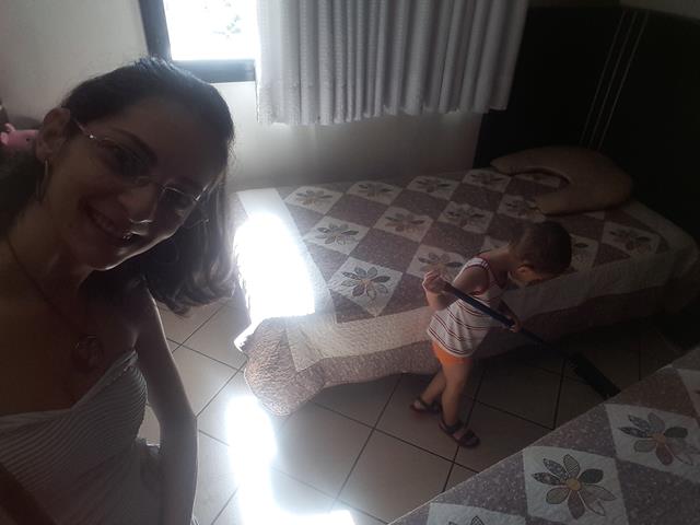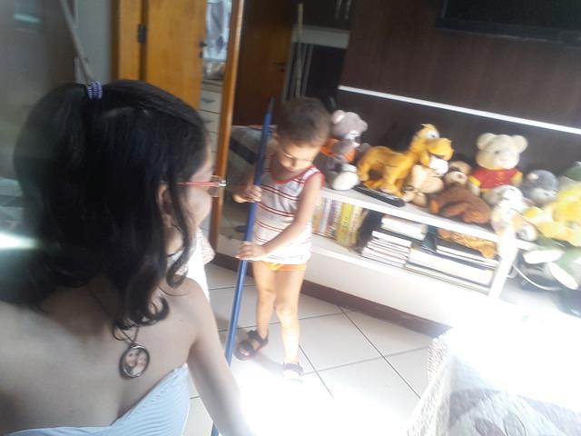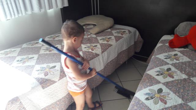 Hoje é dia de FAXINA. A mamãe estava lavando o banheiro e o Davi Antonios estava observando o que eu estava fazendo. Ele foi até a dispensa pra pegar a vassoura sem falar com a mamãe. A mamãe ficou encantada ao ver o processo dele. Mas, creio que estou no caminho certo... A gente canta, dança e diverte enquanto faz a faxina.