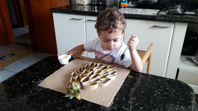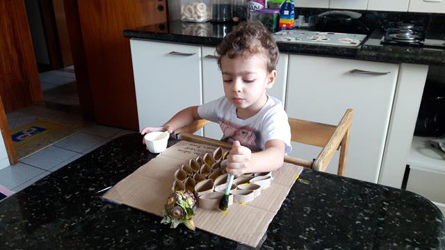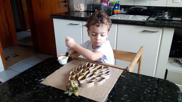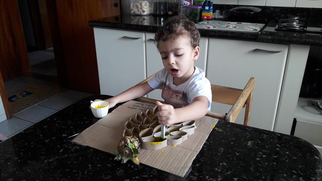 “Os olhos não bastam para ver. Tem que saber observar, sentir e pensar no lugar da criança, poder entrar no seu mundo, identificar-se com ele”. A criança aprende brincando, e brincando ela é feliz! As crianças adoram pintar e pra fazer uma atividade diferente, é só propor que elas pintem dentro de um espaço pré-definido! Feita com rolo de papel higiênico e o tronco do abacaxi formado ABACAXI como o Davi gosta de comer desta fruta. Legal, né? Davi Antonios fez uma das coisas que ele mais gosta: pintar. Uma atividade divertida que bastante tempo de concentração. Trabalhamos a coordenação motora fina. #maeemdia #brincarjunto #tempojunto #maternidadereal #maternidadeativaeconsciente #educandocomamor #DaviAntonioscom2anose10meses