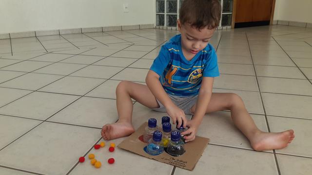 No momento, Davi Antonios abriu primeira garrafa, colocou o pompom da cor correspondente e depois fechou a tampa. No próximo passo, ele abriu segunda garrafa, colocou o pompom e depois fechou,... Davi estava com muita paciência para executar essa atividade. Ele queria brincar novamente e ficou encantado! #maeemdia #brincarjunto #tempojunto #maternidadereal #maternidadeativaeconsciente #educandocomamor #DaviAntonioscom2anose10meses