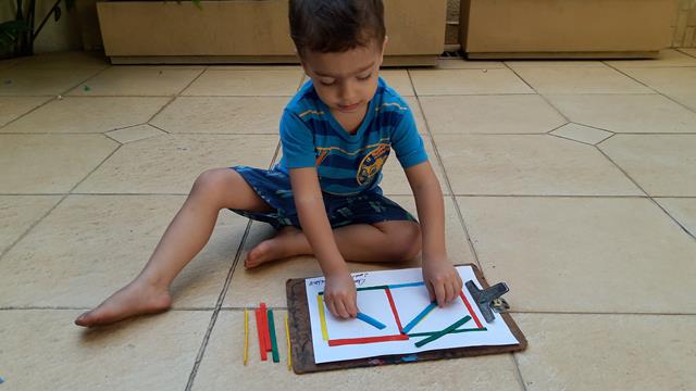 JOGO DE CORES COM PALITOS DE PICOLÉ: é uma atividade muito boa para trabalhar habilidades motoras finas, percepção visual, atenção, pareamento de cores e formas. A mamãe pegou os palitos de picolé e pintou com tinta guache com cores diferentes. Depois, a mamãe desenhou no cartão as formas de palitos de picolé. O objetivo desta atividade é colocar os palitos de picolé em cima do cartão, de acordo com as cores correspondentes.