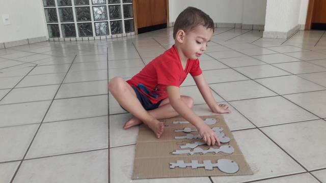 Hoje vamos encaixar as chaves! Peguei o papel EVA para fazer o desenho das formas da chave e recortei. Desenhei as formas da chave no papelão. Trabalhamos a coordenação motora, percepção visual e atenção. Davi Antonios conseguiu encaixar as chaves e gostou desta atividade. #maeemdia #brincarjunto #tempojunto #maternidadereal #maternidadeativaeconsciente #educandocomamor #DaviAntonioscom3anos