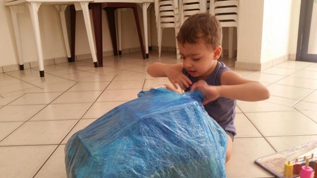 Quando a mamãe pega a caixa na portaria e o Davi Antonios pergunta para mim: “Mamã, o que é isso?”