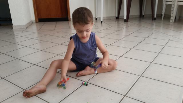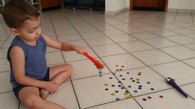 Davi Antonios pegou o presente para brincar que é um jogo de magnético. Jogo de magnético é um máximo! Trabalhando coordenação motora.