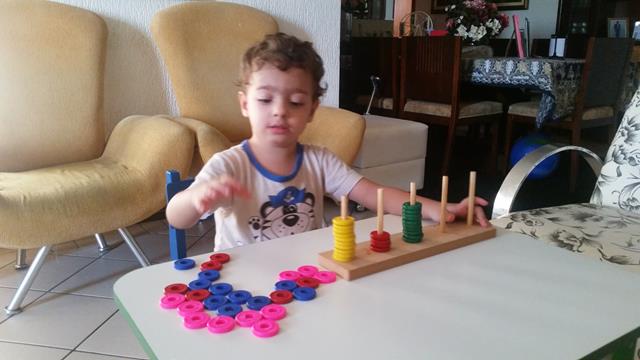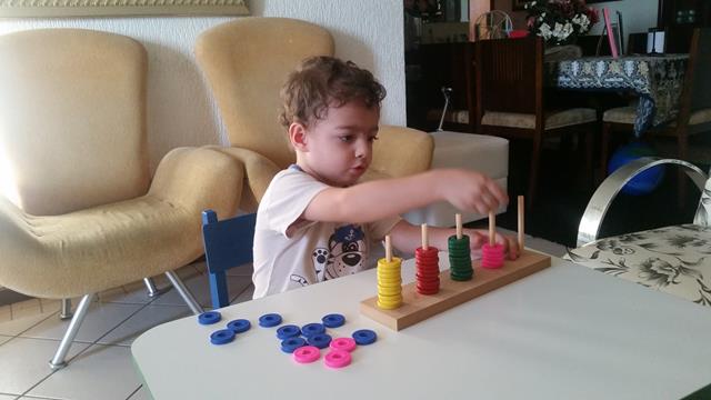 Uma brincadeira antiga! Hoje a saudade bateu forte, bateu doída. Que delícia relembrar e reviver a brincadeira quando o Davi Antonios tinha apenas 1 ano e 5 meses. Essa foi a atividade que mais fez sucesso aqui em casa. Esse Ábaco Aberto em Madeira é presente para a minha afilhada Helena que a Dinda vai estimular, ela não está pronta neste momento, pois ela ainda está na fase colocar tudo na boca. rsrsrs