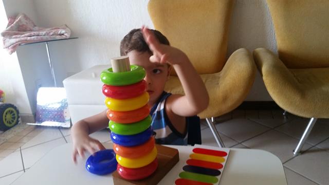 Olha que brinquedo maravilhoso que o Davi Antonios ganhou da mamãe! Ele se divertindo com o brinquedo educativo: COMBINE E ENCAIXE AS CORES. Esse brinquedo tem 10 argolas coloridas e 5 bases verticais, onde a criança vai encaixar uma base e a criança terá que fazer a sequência de acordo com a base selecionada. Uma forma divertida de trabalhar as cores, a coordenação motora, criatividade, sequência, ordem e quantidades. É maravilhoso ver o desenvolvimento do Davi Antonios no momento de brincar, onde vem aprendendo a encaixar as argolas coloridas com atenção e curiosidade. #maeemdia #brincarjunto #tempojunto #maternidadereal #maternidadeativaeconsciente #educandocomamor #DaviAntonioscom3anose1mes