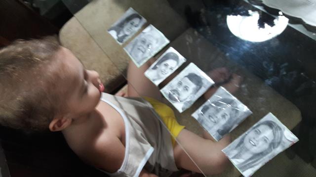 Esse jogo de memória foi feito com caixa de papelão. A parte de trás das peças eu cobri com plástico adesivo. Na frente das peças, eu colei pares de figuras iguais como fotos em família. Ele ainda é novo para entender o jogo de memória, mas optei outra ideia descobrindo quem é cada integrante da família. Ele sentou compenetrado do meu lado e na hora, questionei para o Davi Antonios: “Filho, mostra para a mamãe quem é o Vovô Antonios; quem é a Vovó Fátima; quem é a Dinda Mariana; quem é a Titia Isabella; quem é o Titio Murillo; quem é a Mamãe”. Ele aceeeeertou tudo. Nessa hora, caí na gargalhada e amassei o meu pequeno de tanto beijar e apertar. Lindo jogo simbolizando a união da família. Mamãe contou uma história para o Davi Antonios: “Filho, você sabia que você é parte de uma família muito grande? Você tem uma família com a qual vive todos os dias. Deus criou a família para ser unida, protegendo e fortalecendo cada membro. Uma família unida, guiada por Deus, é uma grande bênção! Os laços de família são muito fortes.” Nosso versículo bíblico: “Vivam juntos e em paz. Sejam compreensivos. Amem-se uns aos outros como membros da mesma família”. (I Pedro 3:8) #maeemdia #brincarjunto #tempojunto #maternidadereal #maternidadeativaeconsciente #educandocomamor #DaviAntonioscom1anoe9meses