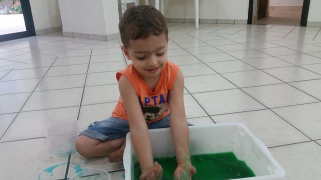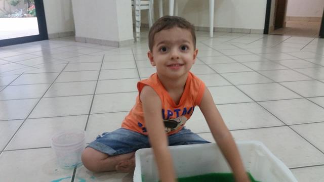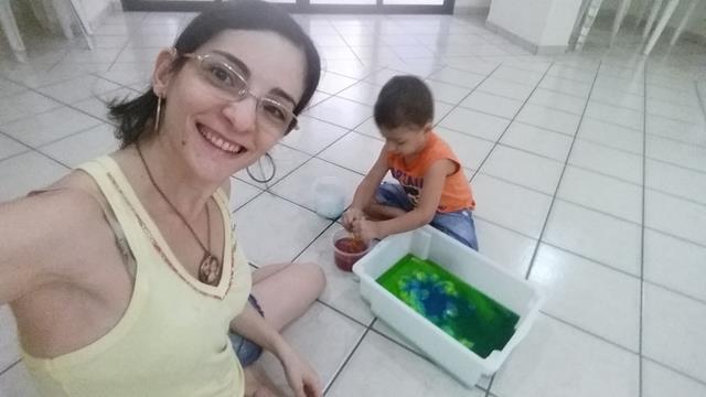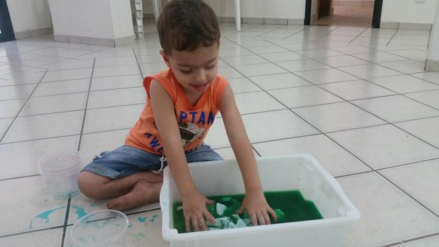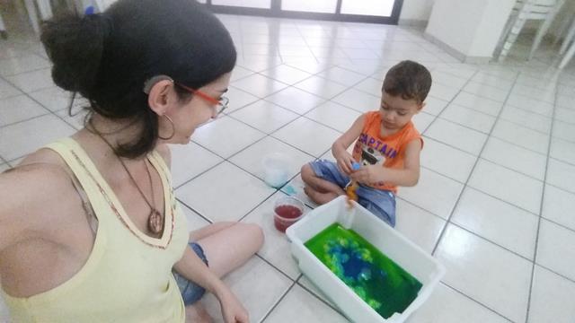 Filho, vamos colorir um pouco esse camaleão usando conta-gotas?