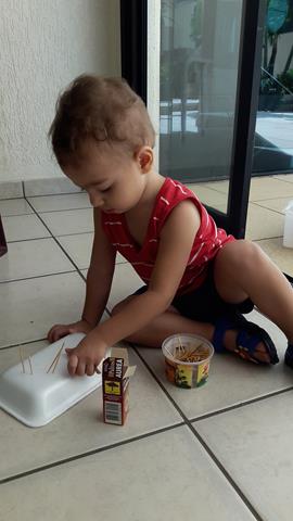 É um dos exercícios favoritos do meu pequeno, algumas vezes ele pratica por um bom tempo. Trabalha coordenação motora fina, movimento de pinça e concentração numa atividade montessoriana com uma bandeja de isopor e palitos de dente. É bom estar sempre olhando tudo o que temos em casa, sempre tem algo que pode ser transformado em material de aprendizagem. #maeemdia #brincarjunto #tempojunto #maternidadereal #maternidadeativaeconsciente #educandocomamor #DaviAntonioscom1anoe9meses
