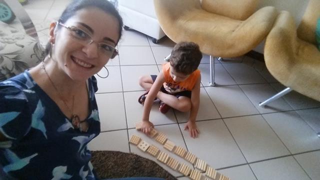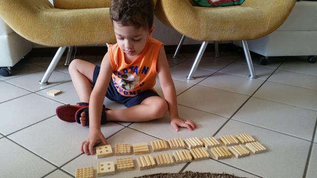 A mamãe colocou todas as peças no chão. Davi Antonios brinca tentando encontrar os pares iguais, mas também vive uma experiência tátil muito interessante. Ele adorou!