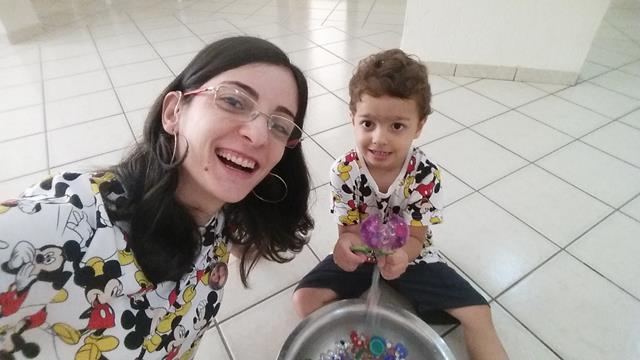 Após finalizar a atividade, a mamãe perguntou para o Davi Antonios responder o que nós aprendemos e o Davi Antonios foi respondendo cada um deles: vogal, número, cor, o coração da mamãe é e o coração do Davi é.
