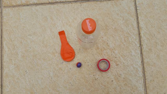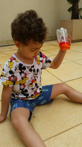 Atividade do dia: PAPA BOLINHAS. Materiais: garrafa pet pequena, durex colorido, bexiga e bolinha de gude. A mamãe cortou a garrafa pet um pouco acima do meio (em relação ao gargalo). Encaixou, na parte maior da garrafa, o gargalo com a “boca” para dentro e colocou a bolinha de gude (tinha colocado uma bolinha, mas coloquei para ele duas bolinhas, pois é mais difícil rsrsrsrs. Seria melhor duas bolinhas de gude). Pegou a bexiga, recortou o meio para tampar a garrafa e fixar com o durex colorido. Pronto!