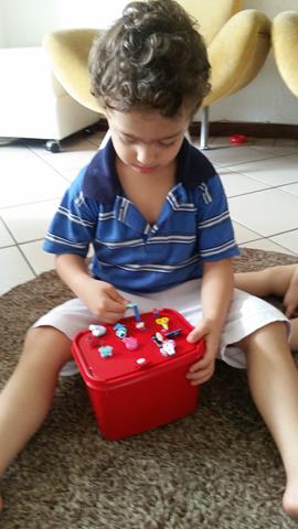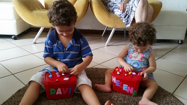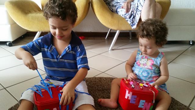 Geeeeente, eu encontrei pela casa dois potes de sorvete com tampa plástica, e logo me deu vontade de fazer brincadeiras com os meus dois pequenos Davi Antonios e Helena. Juntei alguns outros materiais e criei um simpático trio para estimular a curiosidade dos pequenos.