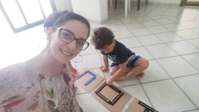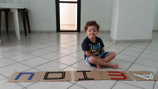 Felicidade em dobro, primeiro por ele ter gostado da atividade que a mamãe preparou, e acima de tudo, por ele ter falado direitinho as vogais