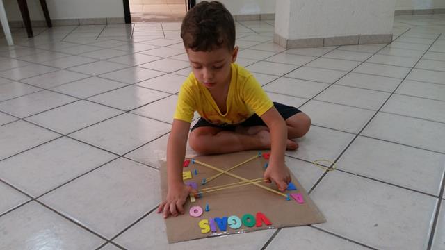 Gostamos muito de fazer essa atividade, que envolve coordenação visual e motora. Pareamento de vogais trabalhando o movimento de pinça, muito importante para a coordenação motora fina. Indiretamente, favorece a concentração, organização e reconhecimento visual.