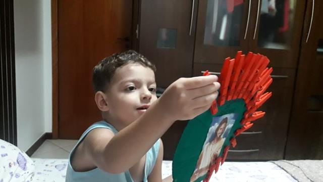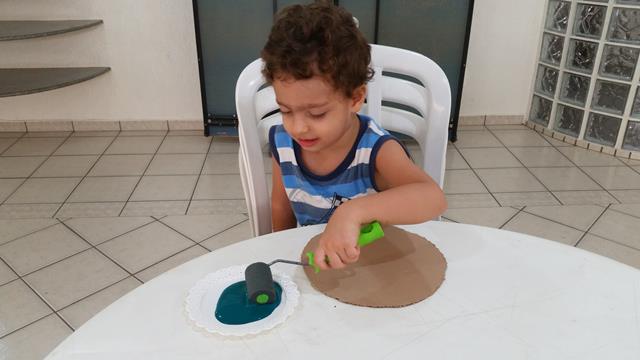 CALENDÁRIO DO ADVENTO – Esse ano revolvi fazer um calendário do advento, já ouviu falar? É uma forma linda de contar os dias para a chegada do Natal. A mamãe fez um calendário do advento utilizando o reaproveitamento de materiais que iriam para o lixo. Materiais: papelão, rolo de papel alumínio, prendedor de roupa, envelope, tinta guache (verde e vermelha), canetinha preta e foto de Jesus. A mamãe fez o círculo no papelão e Davi o pintou com tinta guache verde. Davi Antonios pintou o rolo de papel alumínio. A mamãe pintou o prendedor de roupa com a tinta guache vermelha e o Davi ajudou.