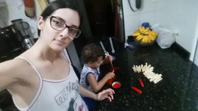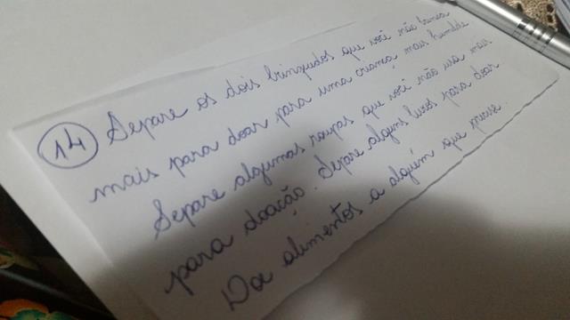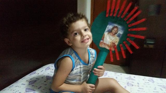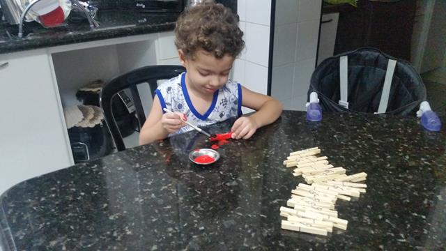 A mamãe escreveu os números dos dias no prendedor de roupa e o envelope, o meu tem 25 dias. Dentro de cada envelope, a mamãe colocou uma surpresa e os versículos sobre o nascimento de Jesus. Todos os dias, ele pega o que está no envelope, a mamãe lê o versículo. Ele se divertiu com a surpresinha.