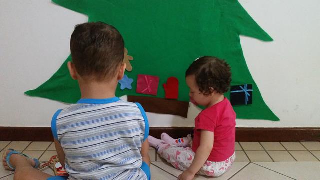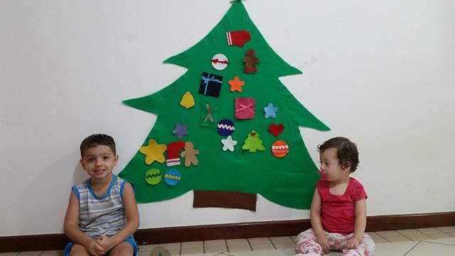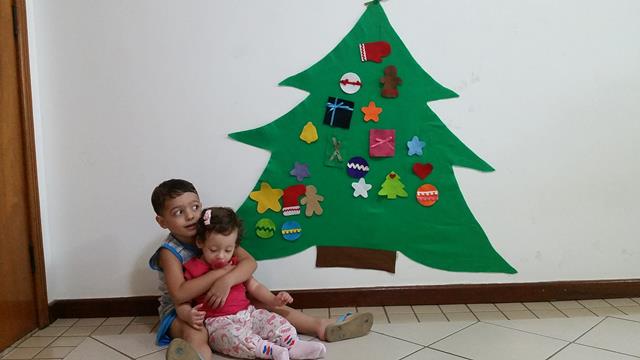 Uma linda árvore de Natal toda em FELTRO para os pequenos brincarem e montarem do jeitinho deles ❤! Tiram todos os enfeites, jogam no chão, exploram, e depois colocam novamente na árvore. Existe muita aprendizagem nessa brincadeira também.