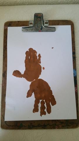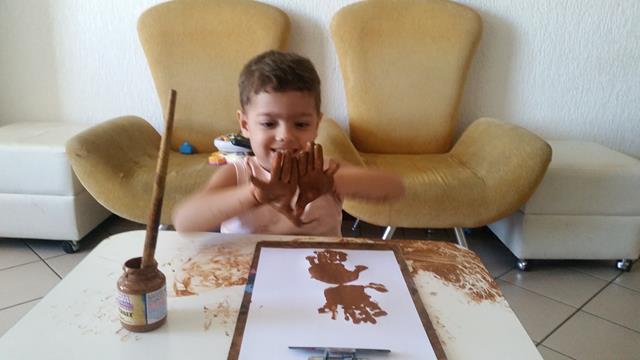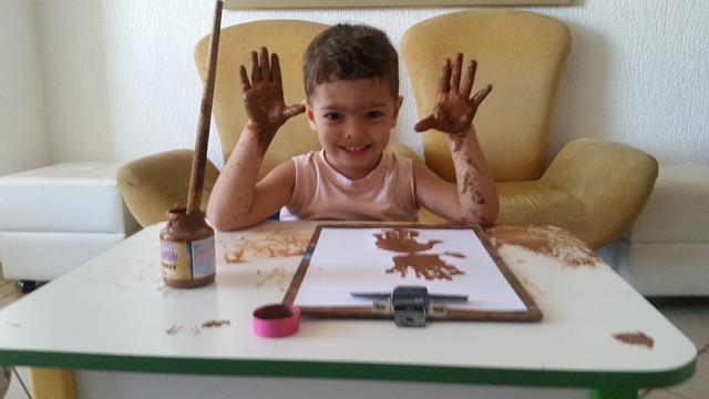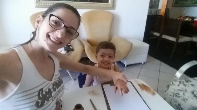 Reninha linda usando a impressão das mãos do Davi Antonios.