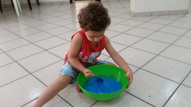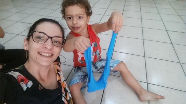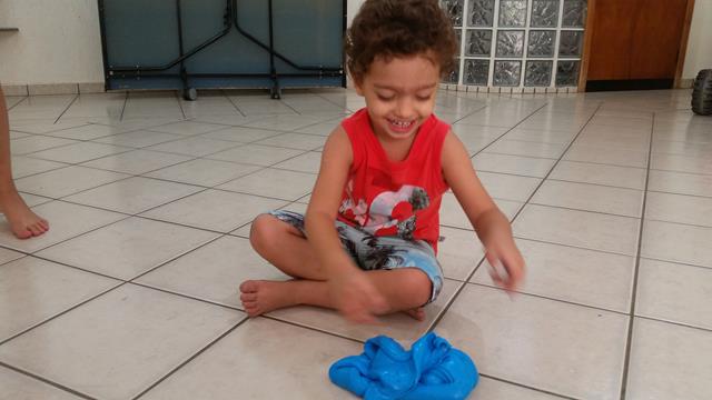 Com o Slime, a brincadeira é infinita! ESTICAR O SLIME, segurando em quatro pontas, formando uma espécie de rede. Então nós balançamos a rede para cima e para baixo até soltaremos juntos e tentaremos formar uma bolsa de ar no chão. SAPATINHOS GRUDENTOS, andando pelo lazer com “sapatinhos”. DEIXAR ESCORRER, curtindo bastante é simplesmente observar o slime escorrer. FAZER NOJO NA MAMÃE, justamente provocar meu nojo colocando o slime no meu braço. E eu? Ora! Eu deixo e dou muitas risadas! Kkkkkkkk ?