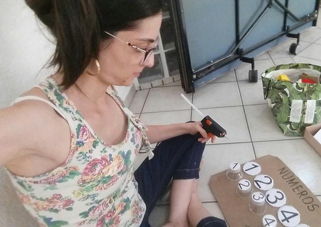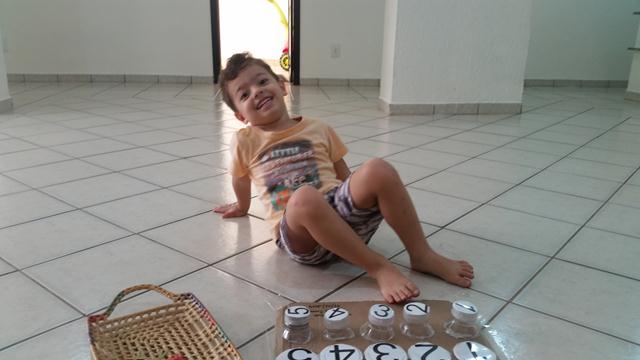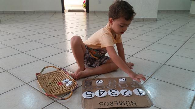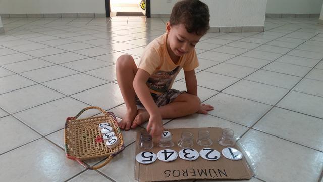 O objetivo da atividade é fechar a tampa de acordo com os cartões dos números.