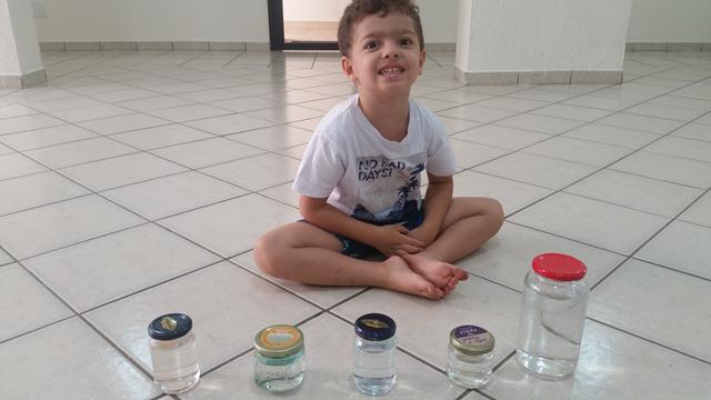 O exercício era chacoalhar o vidro até a água ficar com a coloração da tinta que foi colocada no interior da tampa! Foi incrível!
