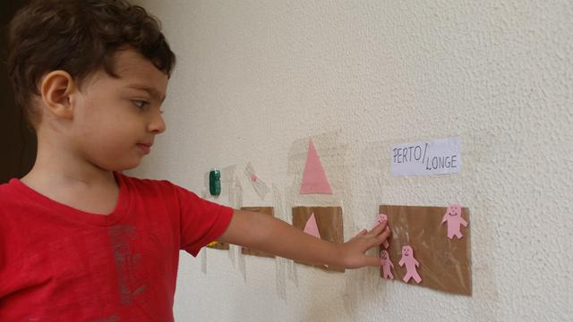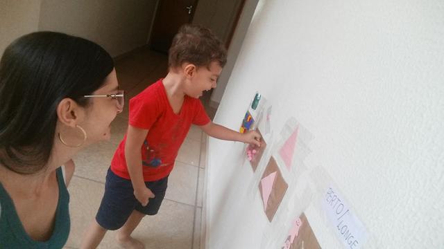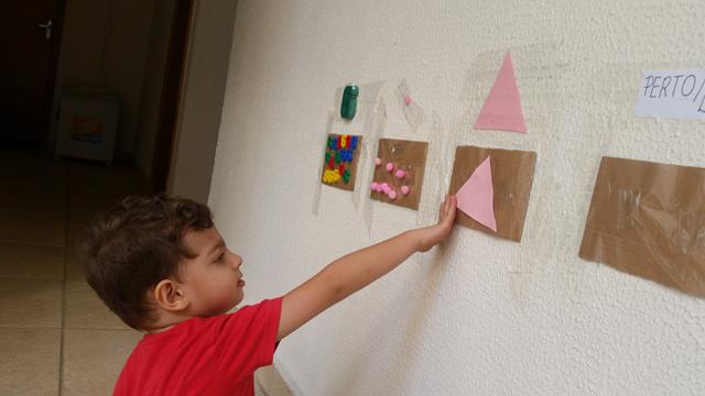 O objetivo desta atividade é colocar cada número, cor rosa, forma geométrica triângulo e identificar o que é perto e longe no seu lugar.
