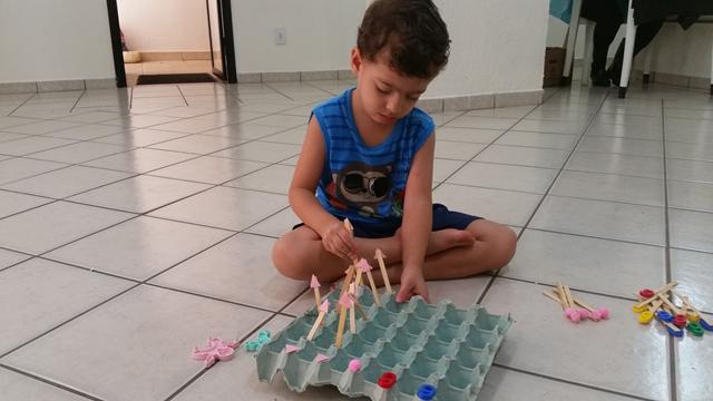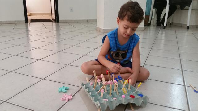 Uma ótima atividade para desenvolver a coordenação motora fina, concentração, atenção, percepção visual e raciocínio. Davi Antonios gostou bastante desta atividade.
