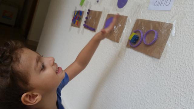O objetivo desta atividade é colocar cada número, cor roxo, forma geométrica círculo e identificar o que é vazio e cheio no seu lugar.