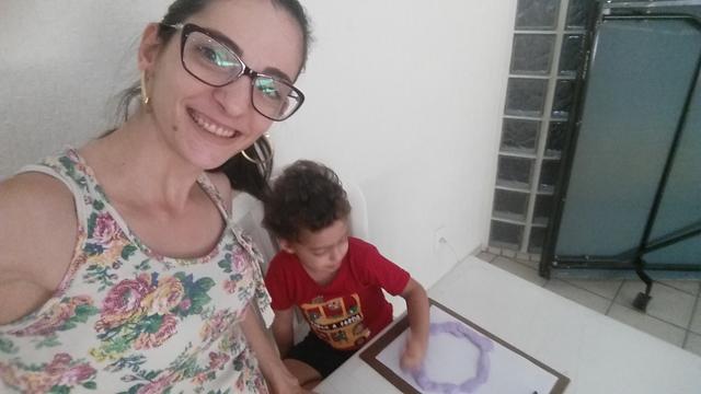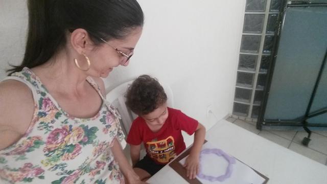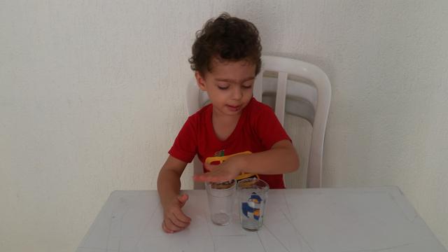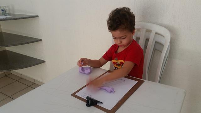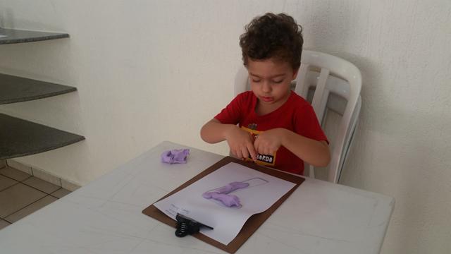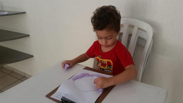 O primeiro objetivo desta atividade é o contorno do número 7 com massinha, não pensei 2 vezes é lógico que Davi Antonios adorou e arrasou ?? Ele foi fazendo "cobrinhas" com a massa, e depois preenchendo a forma geométrica círculo no papel. E o segundo objetivo: pedi para ele identificar o que é vazio e cheio (copo/copo com animal).