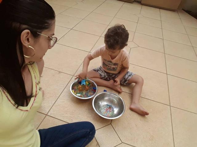 Após a atividade, a mamãe pediu para o Davi Antonios: “Filho, ande rápido,... Ande devagar!”