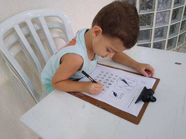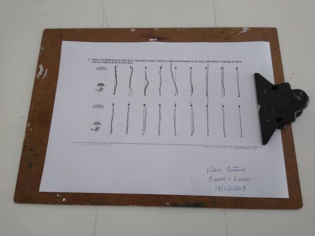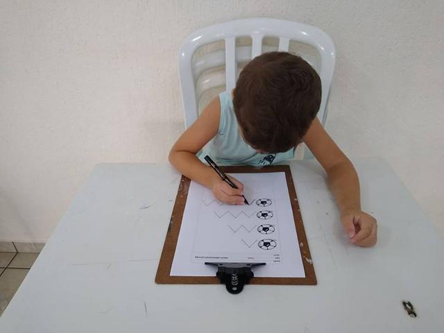 Teve atividades de traçado, lógica, coordenação motora, concentração, percepção visual e atenção.