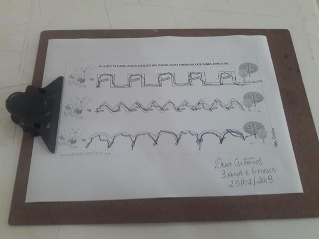 Teve atividades de traçado, lógica, coordenação motora, concentração, percepção visual e atenção.