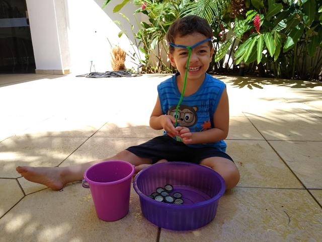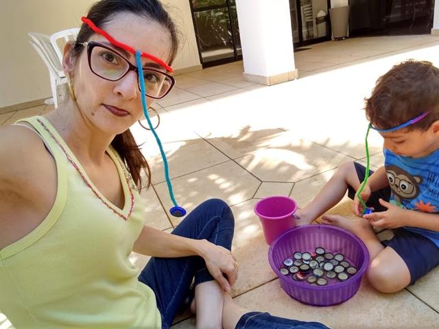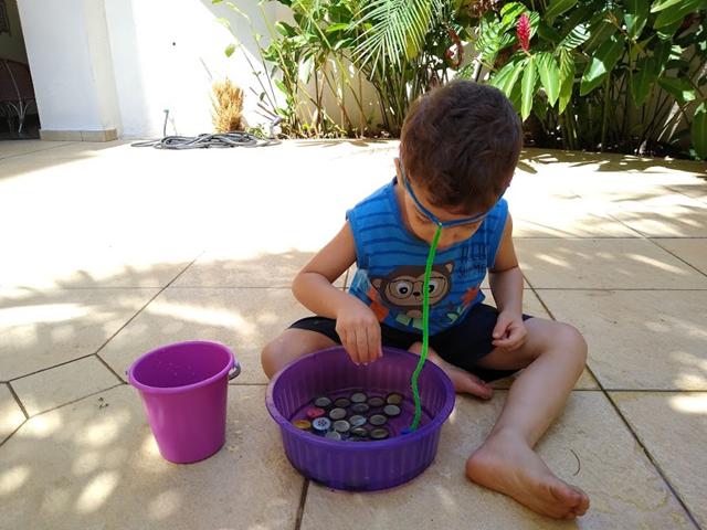 Atividade de hoje: PESCARIA COM A CABEÇA. Tampinhas metálicas, limpador de cachimbo com imã na ponta e uma vasilha com água. Uma atividade simples e divertida. Trabalhando coordenação motora. Davi Antonios amou. #maeemdia #brincarjunto #tempojunto #maternidadereal #maternidadeativaeconsciente #educandocomamor #DaviAntonioscom3anose7meses