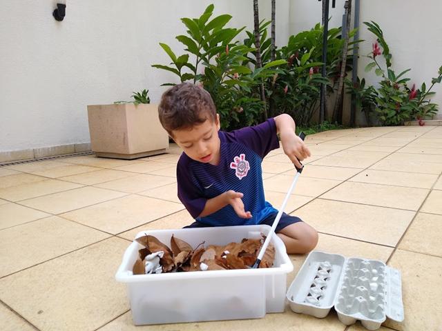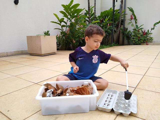 Vamos brincar de caça aos ovos de dinossauro? Concentração, coordenação motora e contagem. Davi amou.