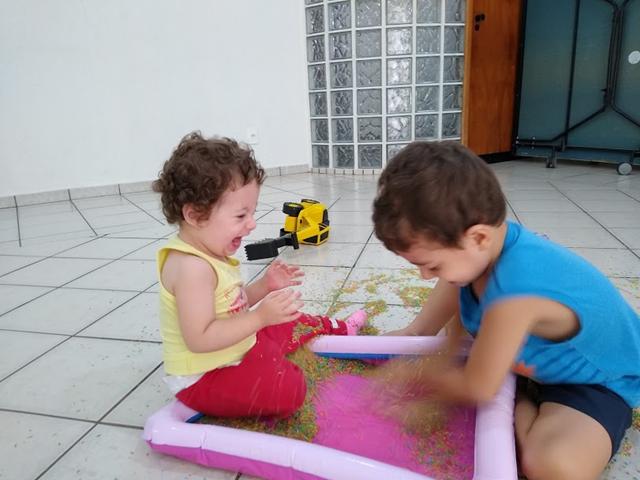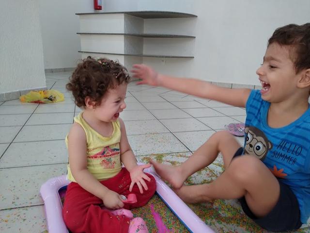 Eu a-d-o-r-o as brincadeiras sensoriais. Desde que tive contato com a filosofia Montessori, que defende o fato de que a criança descobre o mundo a partir dos sentidos, eu pesquisei sobre as atividades que podem ser feitas nesta linha a trabalhei este tipo de descoberta com o Davi Antonios desde que ele nasceu (as melhores brincadeiras sensoriais que fiz com ele no seu primeiro ano de vida estão neste post aqui). #maeemdia #brincarjunto #tempojunto #maternidadereal #maternidadeativaeconsciente #educandocomamor #DaviAntonioscom3anose8meses #Helenacom1anoe6meses