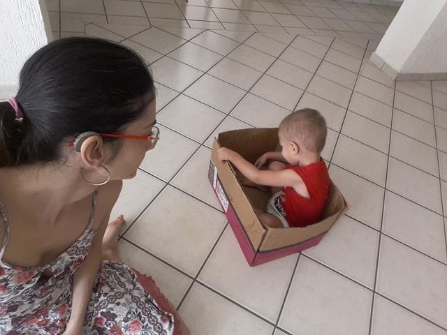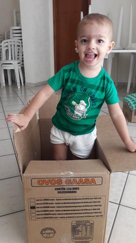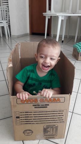 A dica não é mirabolante nem genial, mas aqui em casa faz o maior sucesso: caixa de papelão! O Davi Antonios adora, pode usar e abusar a vontade, sem medo de ser feliz e é ótima para estimulação infantil… E quanta estimulação envolvida: a criança ajuda a pintar (criatividade e motricidade fina), brinca de faz de conta (imaginação), aprende conceitos (entrar na caixa, sair da caixa, colocar dentro, tirar).