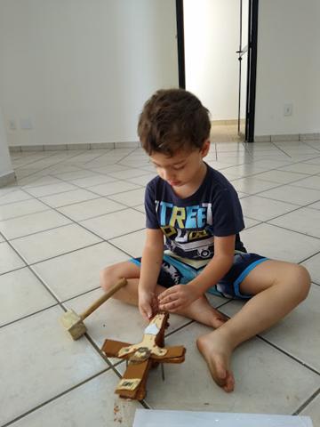 No final, Davi Antonios martelando os pregos na cruz de Jesus (mãos e pé). Ele amou muito e eu mais ainda o encantamento dele. #maeemdia #brincarjunto #tempojunto #maternidadereal #maternidadeativaeconsciente #educandocomamor #DaviAntonioscom3anose8meses