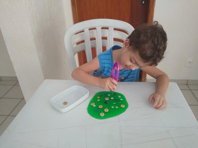 Uma atividade que rendeu muita atenção por aqui, e tão simples. Slime + Botões + Pinça Jacaré + Pinça Jumbo. Estimulamos a coordenação motora fina, noção de espaço, concentração e paciência. Resultado ele amou, se divertiu muito com a mamãe. #maeemdia #brincarjunto #tempojunto #maternidadereal #maternidadeativaeconsciente #educandocomamor #DaviAntonioscom3anose8meses